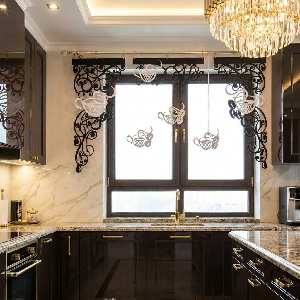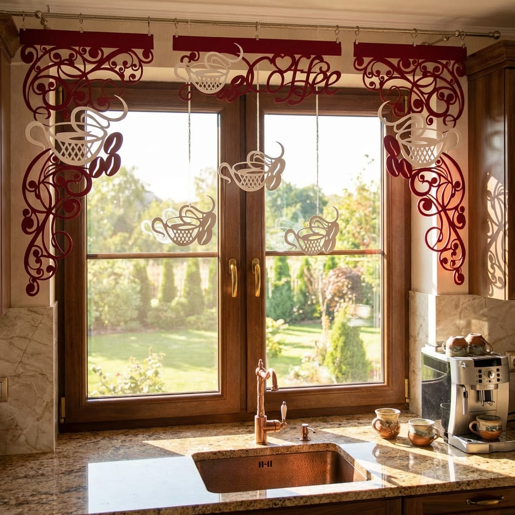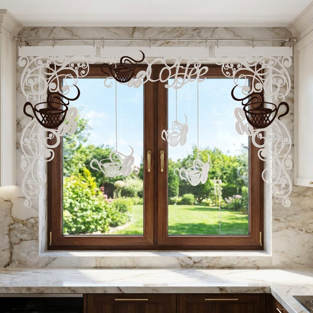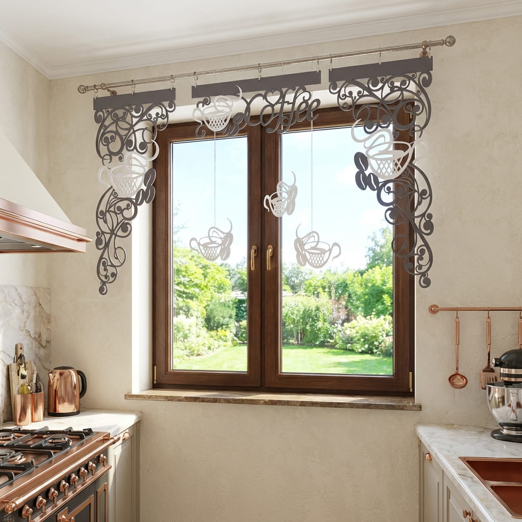 Uwaga: Oferta dotyczy wyłącznie elementów ażurowych z kompletu Coffee 2. Firana nie jest częścią zestawu.