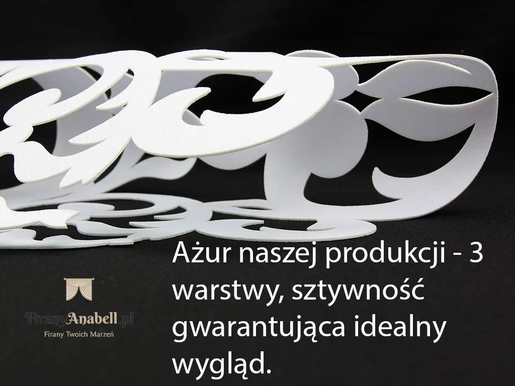 Elementy ażurowe stanowią eleganckie wykończenie i mogą zostać wykorzystane jako ozdoba do firany, którą już posiadasz. Dzięki dekoracyjnym zawieszkom oraz dopracowanym detalom całość prezentuje się lekko i stylowo, nadając wnętrzu wyjątkowego charakteru.