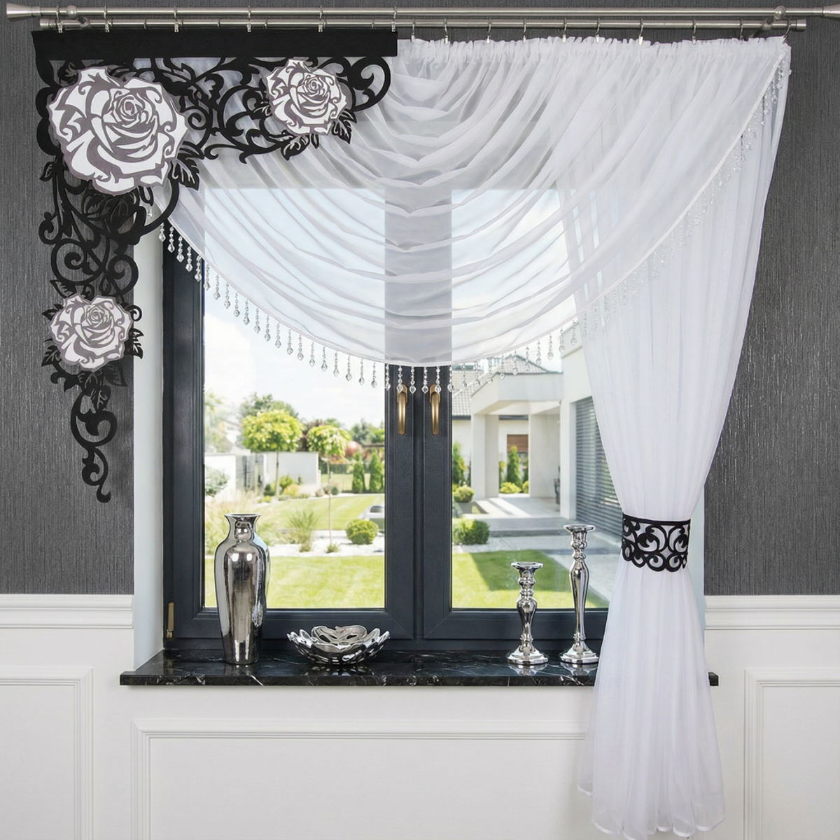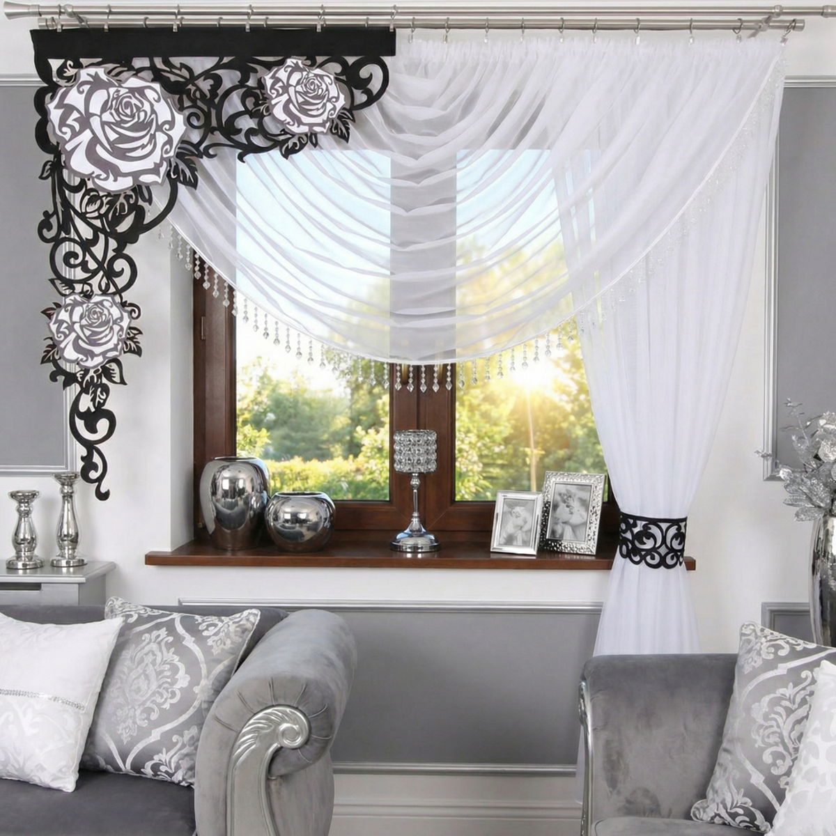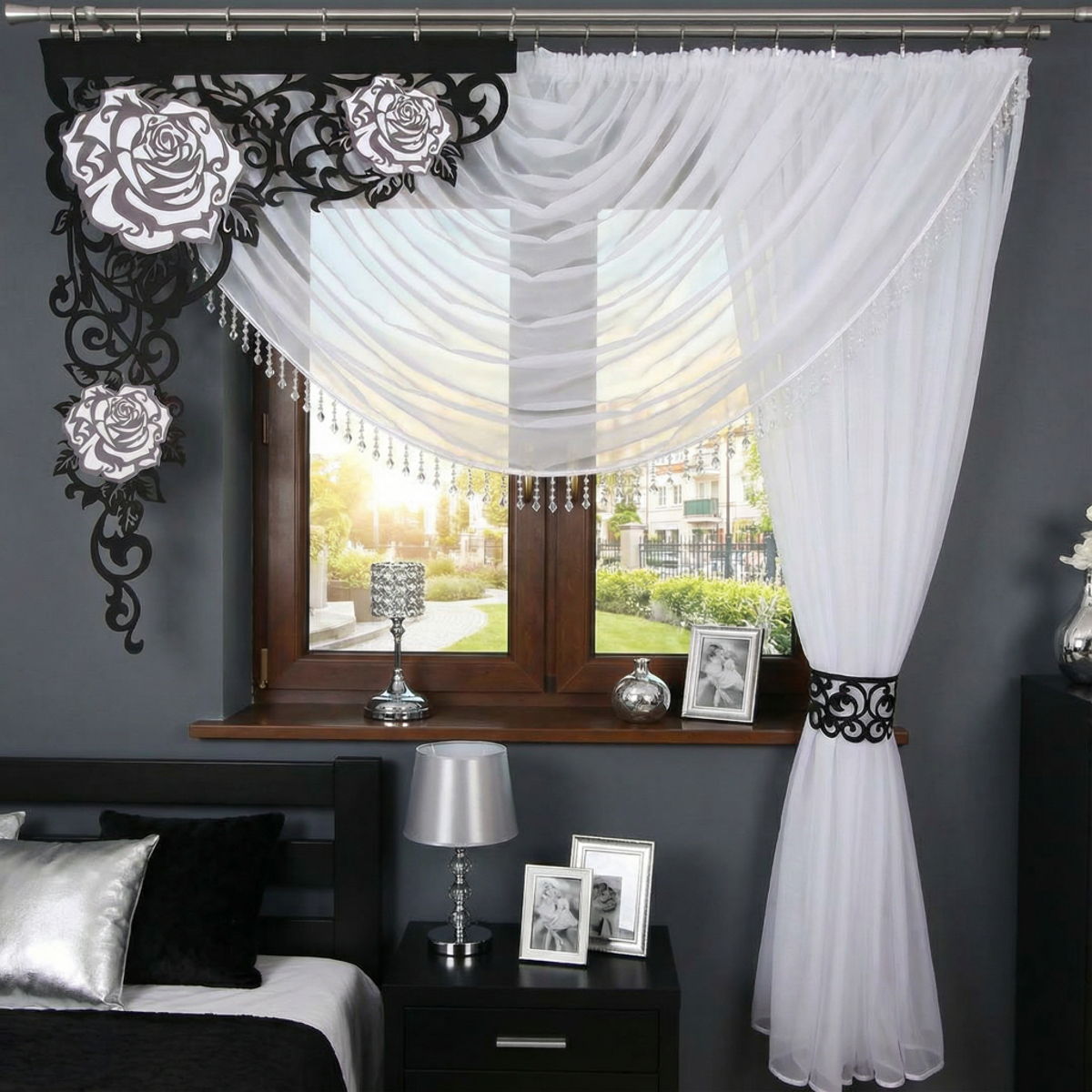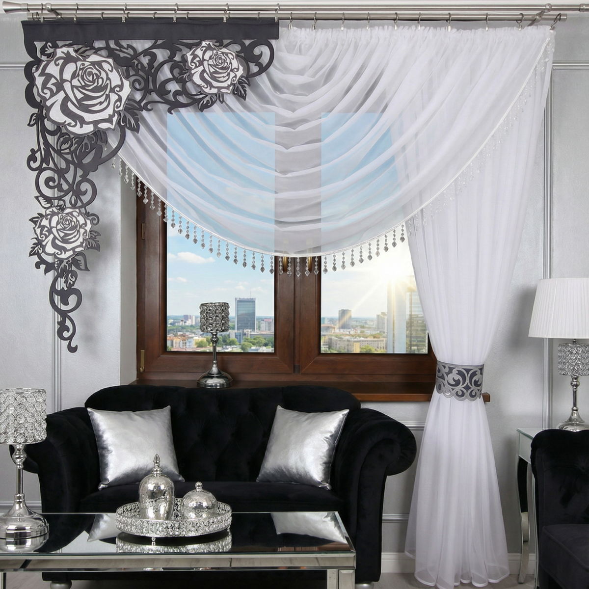 Tak – połączenie woalu z dekoracyjnym narożnikiem 3D sprawia, że firana świetnie wygląda zarówno w stylu klasycznym, glamour, jak i nowoczesnym.