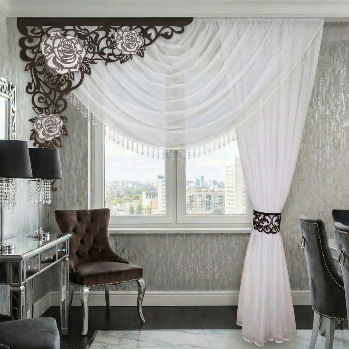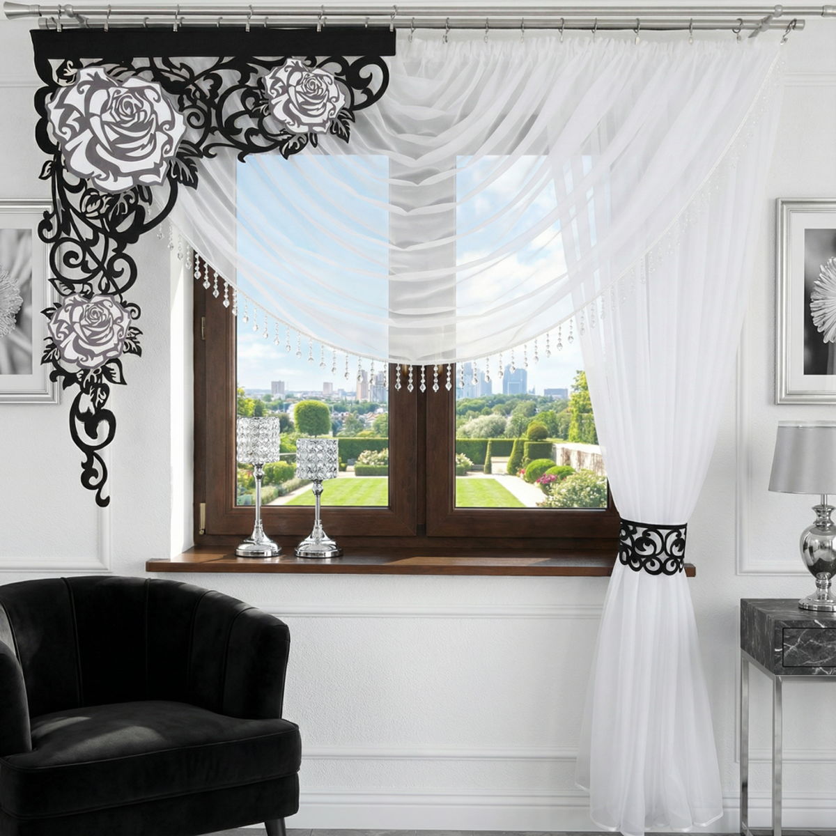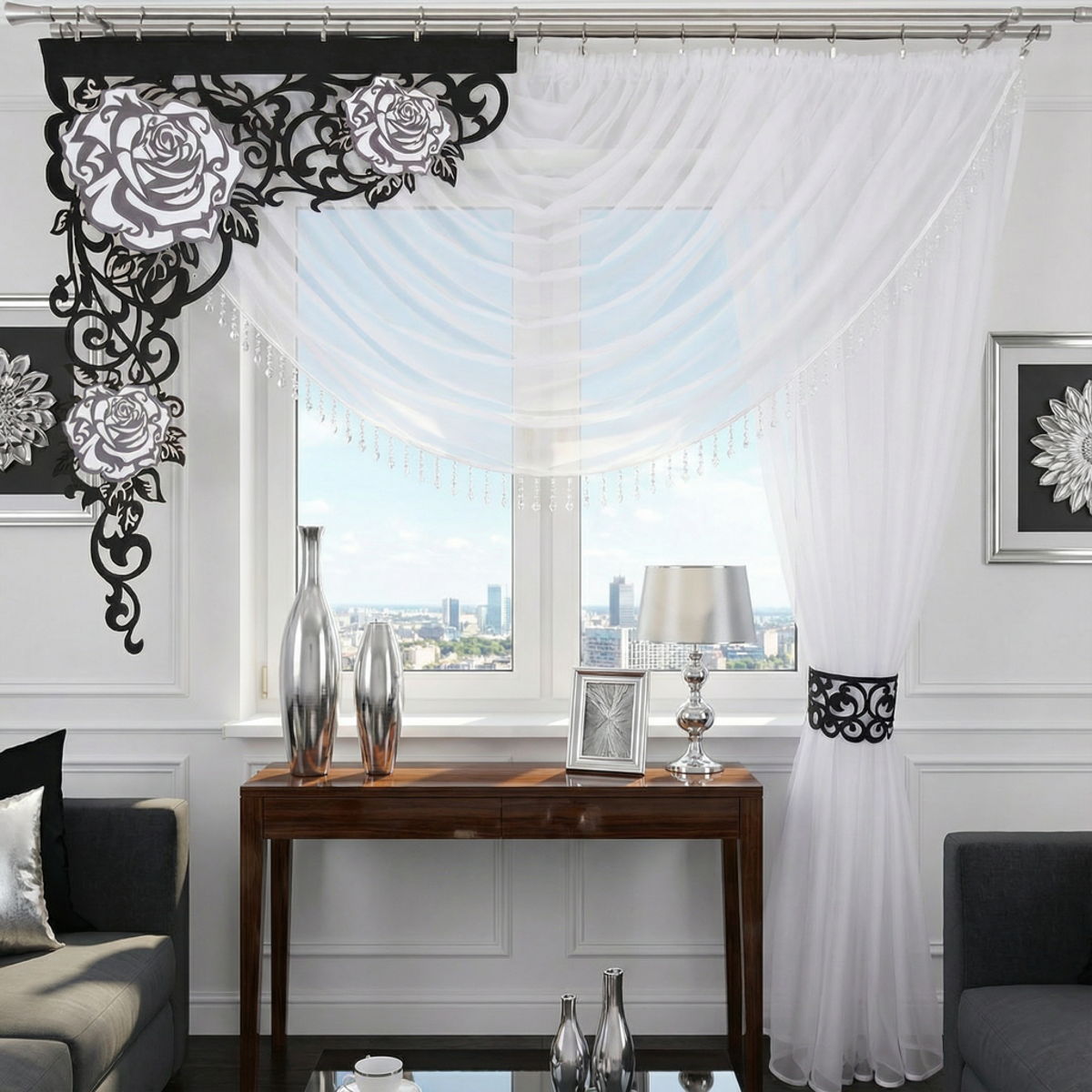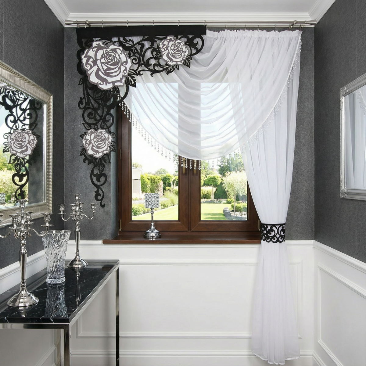 Tak – połączenie woalu z dekoracyjnym narożnikiem 3D sprawia, że firana świetnie wygląda zarówno w stylu klasycznym, glamour, jak i nowoczesnym.