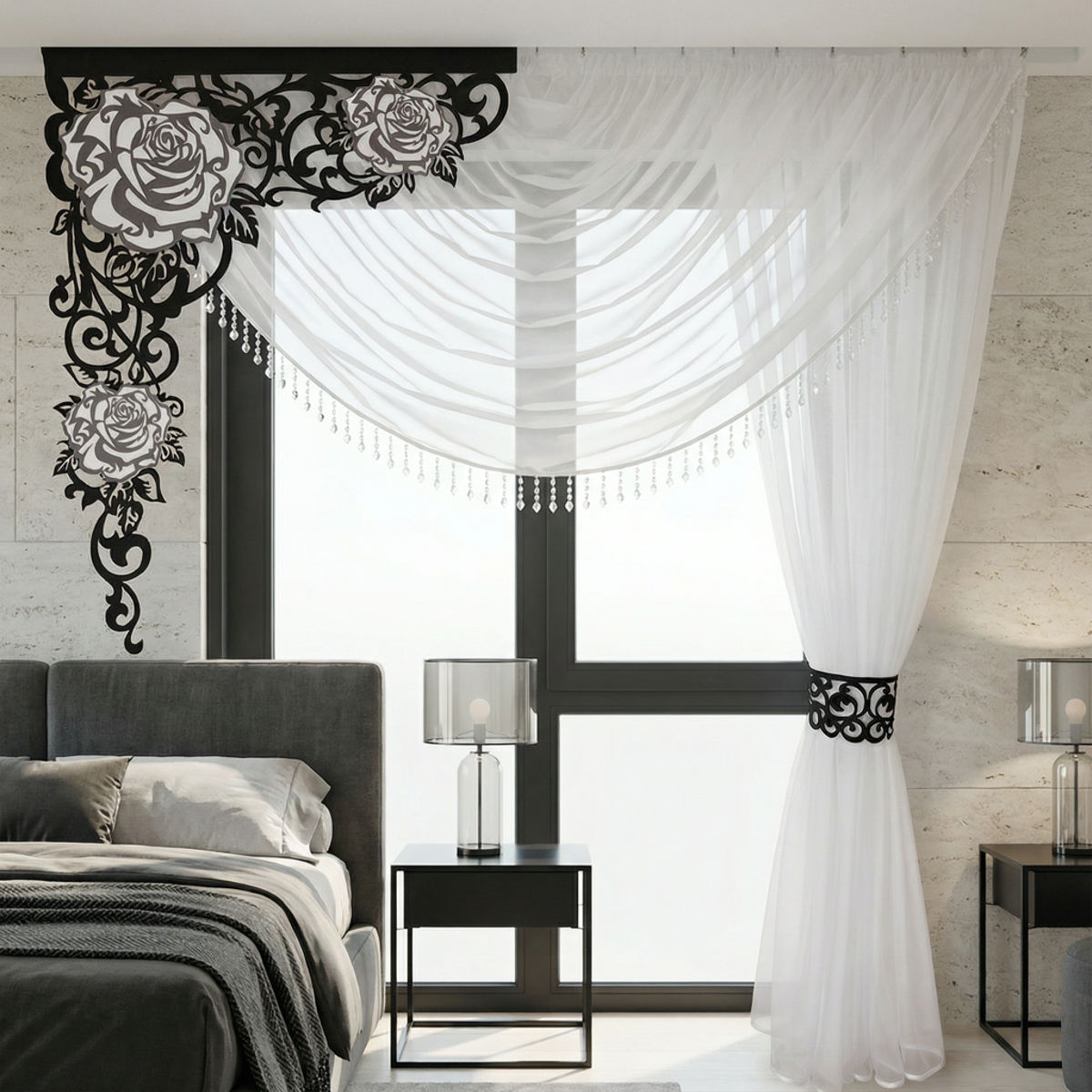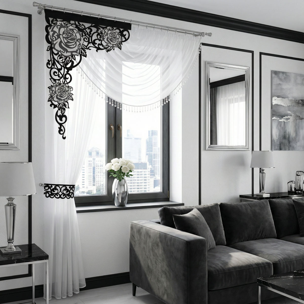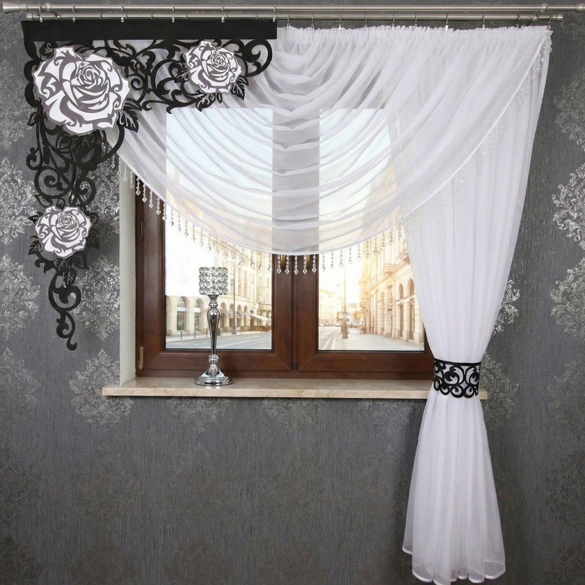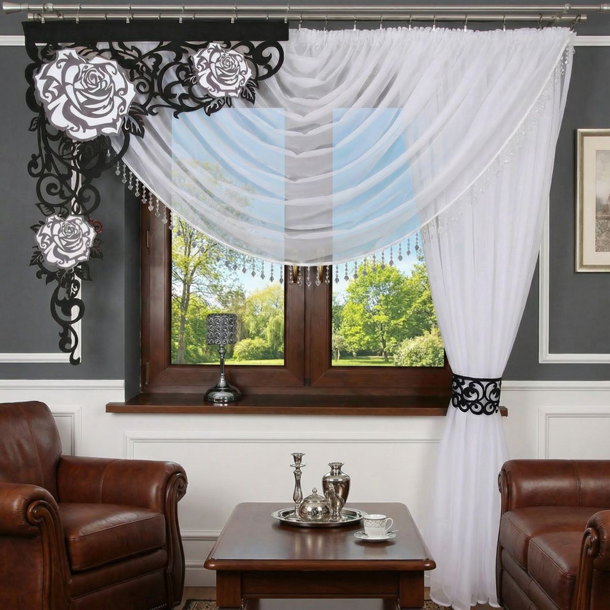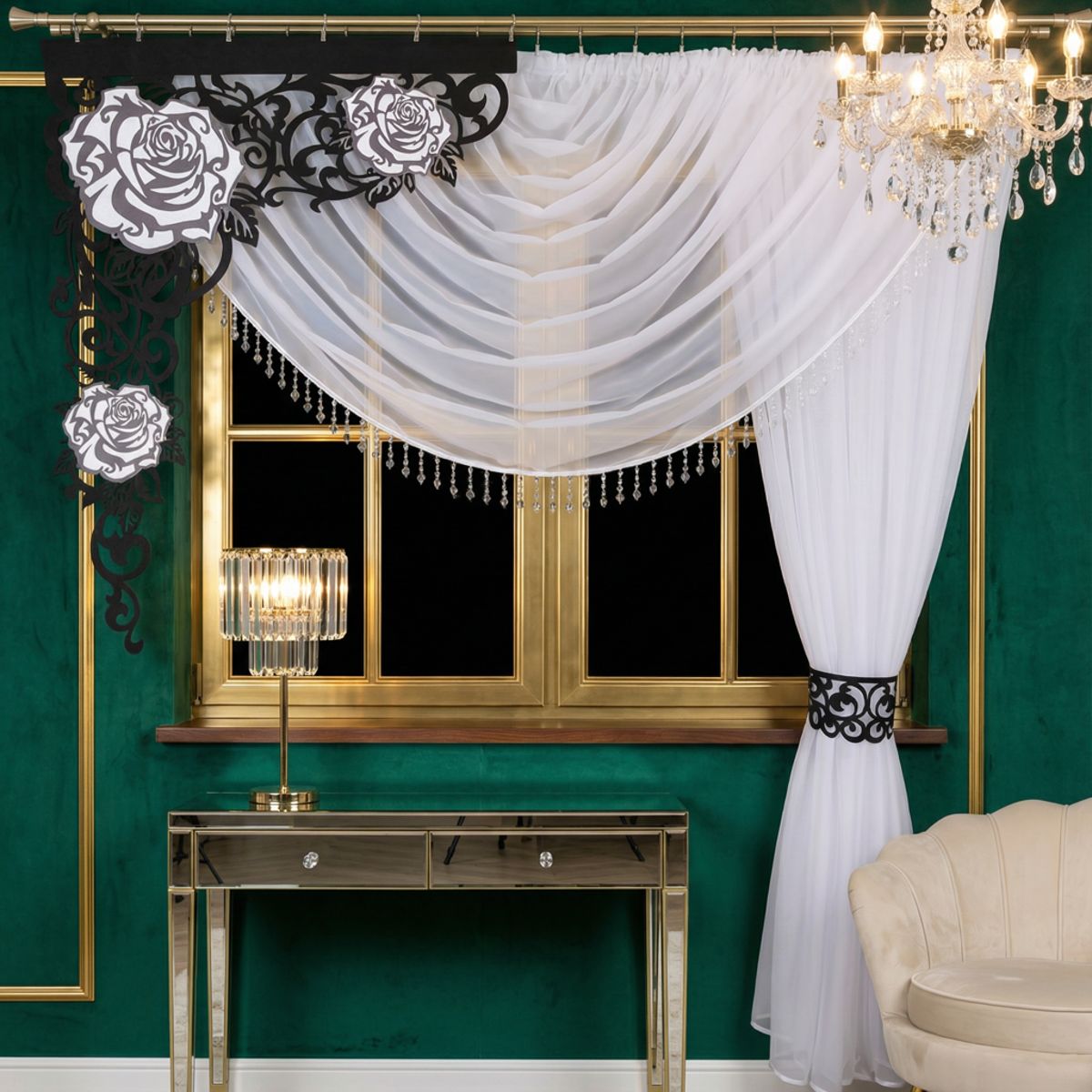 Tak – połączenie woalu z dekoracyjnym narożnikiem 3D sprawia, że firana świetnie wygląda zarówno w stylu klasycznym, glamour, jak i nowoczesnym.
