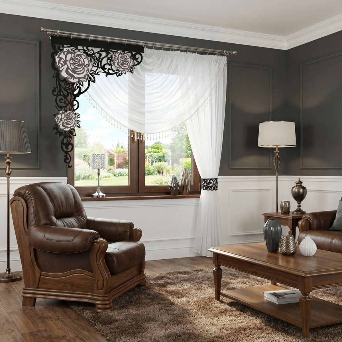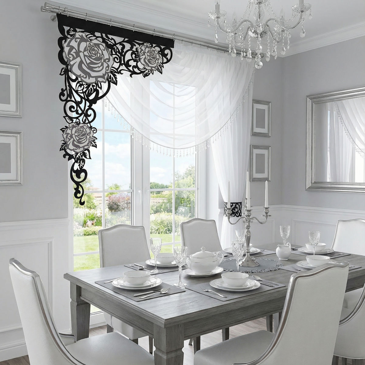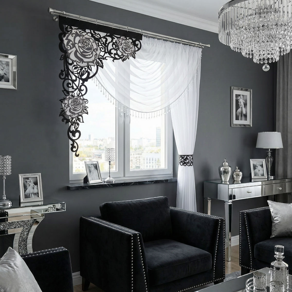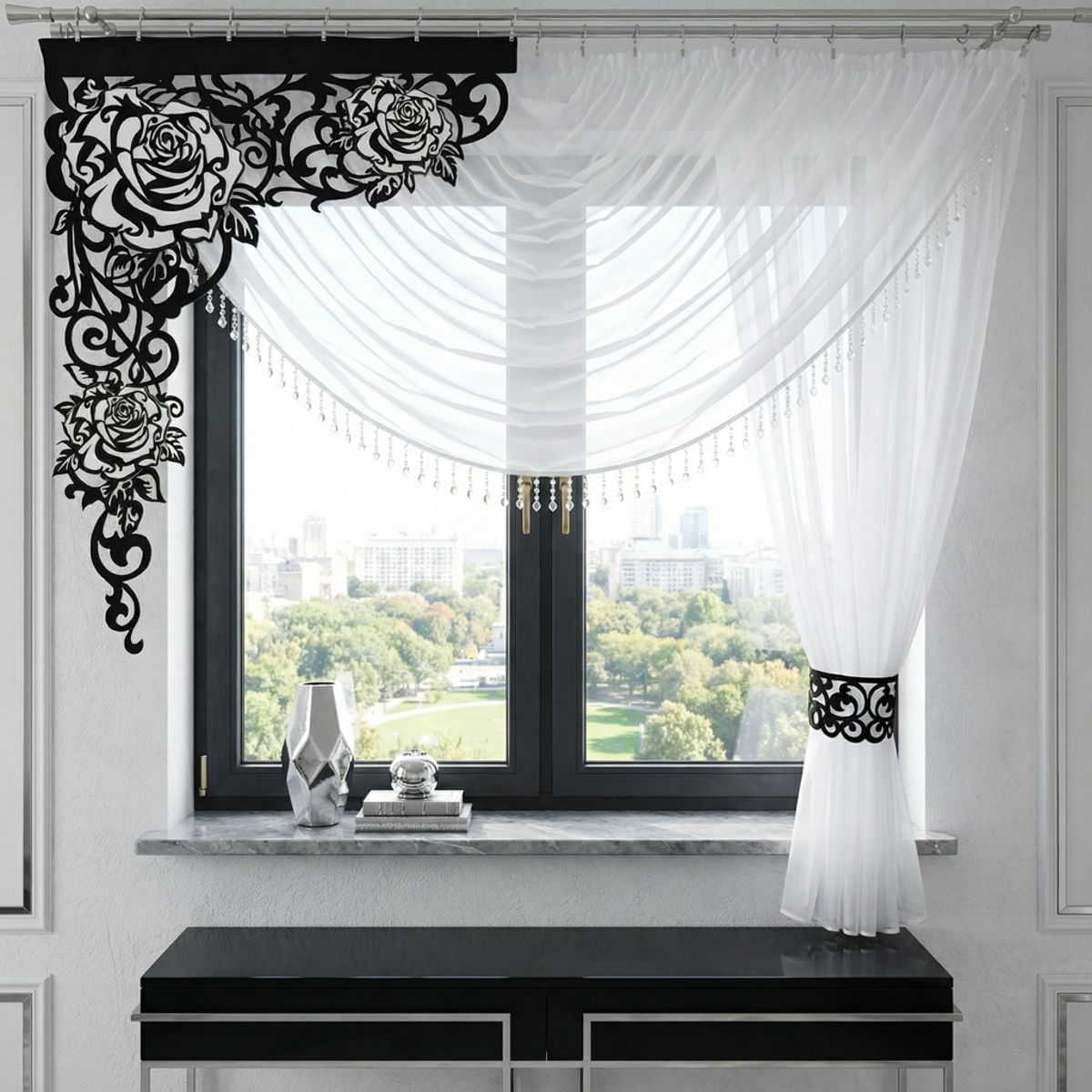 Tak – połączenie woalu z dekoracyjnym narożnikiem 3D sprawia, że firana świetnie wygląda zarówno w stylu klasycznym, glamour, jak i nowoczesnym.