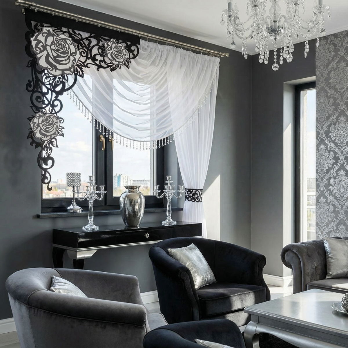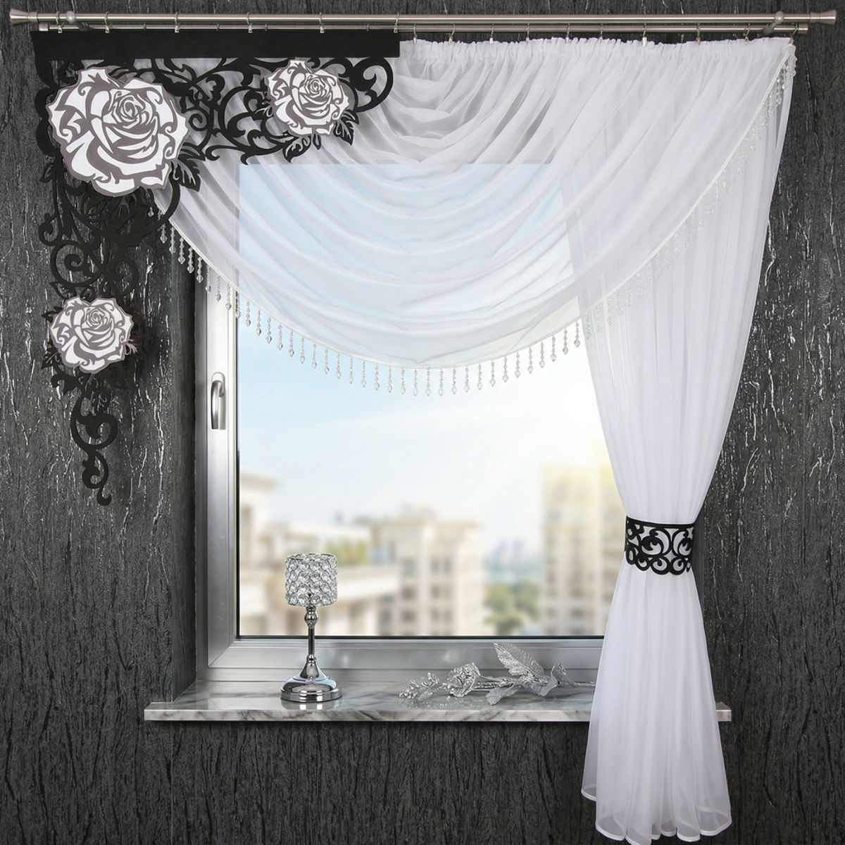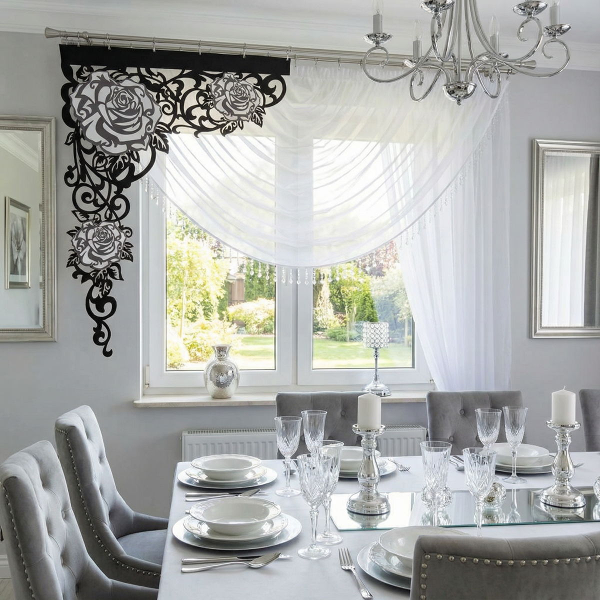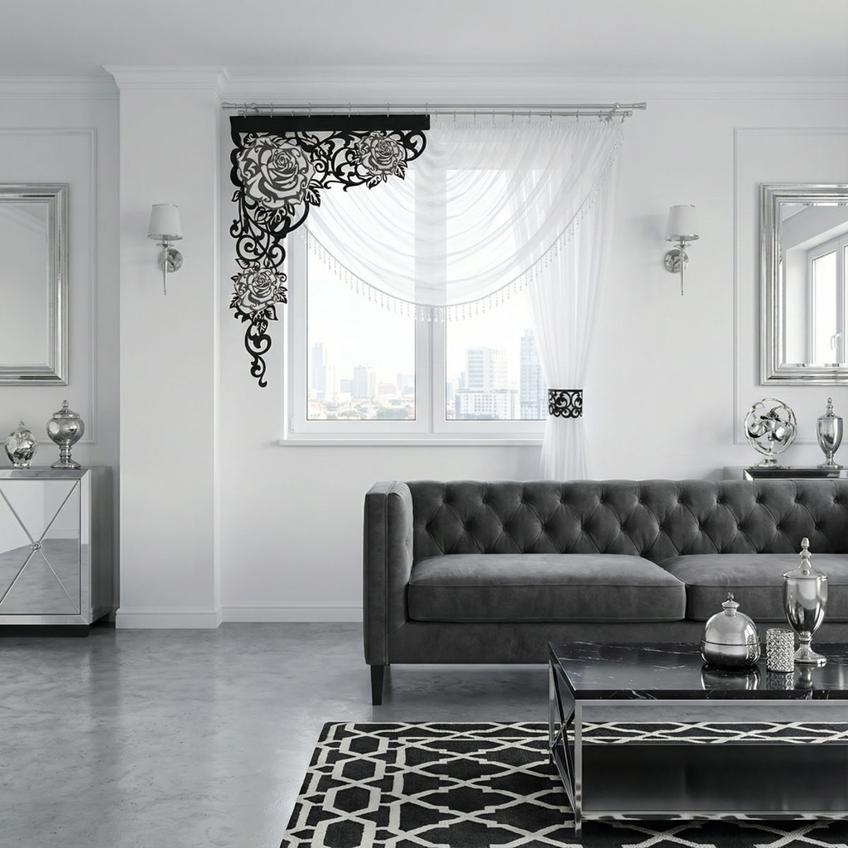 Tak – połączenie woalu z dekoracyjnym narożnikiem 3D sprawia, że firana świetnie wygląda zarówno w stylu klasycznym, glamour, jak i nowoczesnym.