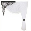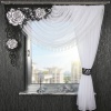 Firana została uszyta z lekkiego, elegancko układającego się woalu, który pięknie przepuszcza światło, zapewniając jednocześnie przytulny klimat we wnętrzu. Ażurowy narożnik 3D z kwiatami nadaje jej nowoczesnego wykończenia i podkreśla dekoracyjny charakter.