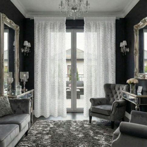 Zwiewny szyfon delikatnie przepuszcza światło, tworząc w pomieszczeniu przyjemną, jasną atmosferę, jednocześnie dodając wnętrzu przytulności. Biały kolor sprawia, że zasłona doskonale pasuje do wielu aranżacji – od klasycznych i romantycznych, po nowoczesne oraz minimalistyczne.