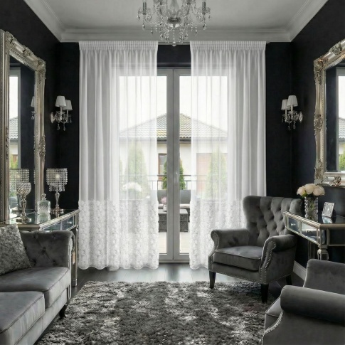 Delikatna struktura siatki sprawia, że firana lekko przepuszcza światło dzienne, rozjaśniając pomieszczenie i nadając mu przytulną atmosferę. Biały kolor to ponadczasowa klasyka, która świetnie pasuje do wnętrz klasycznych, romantycznych, glamour oraz nowoczesnych.