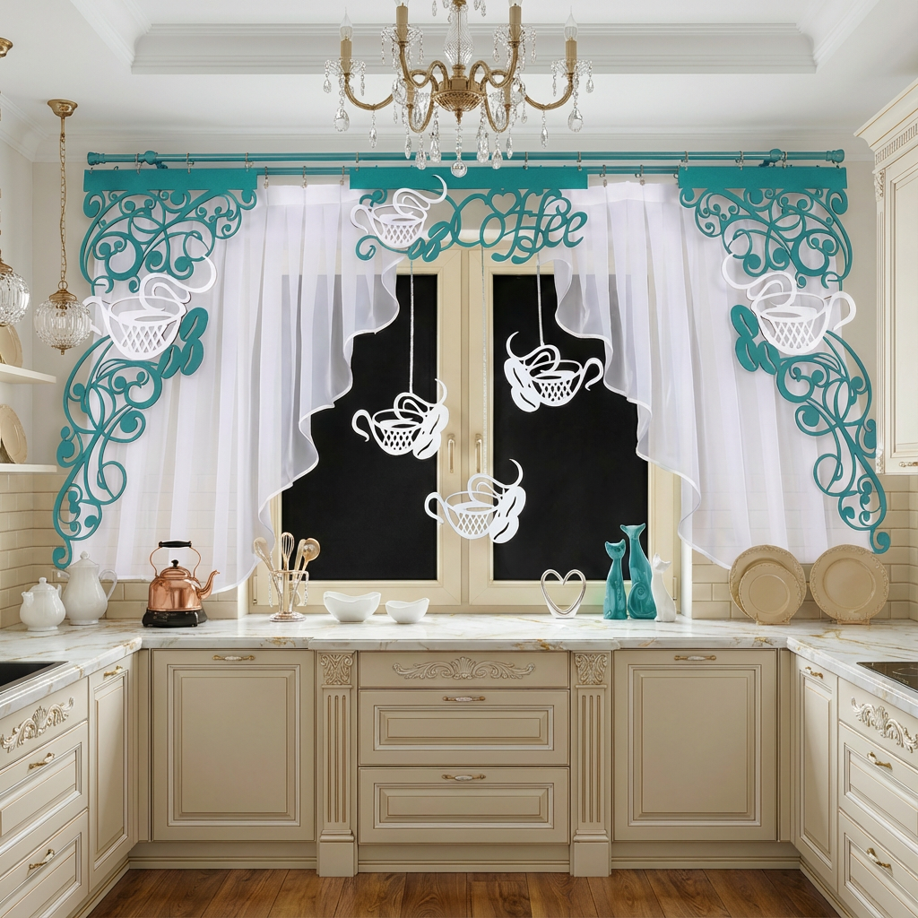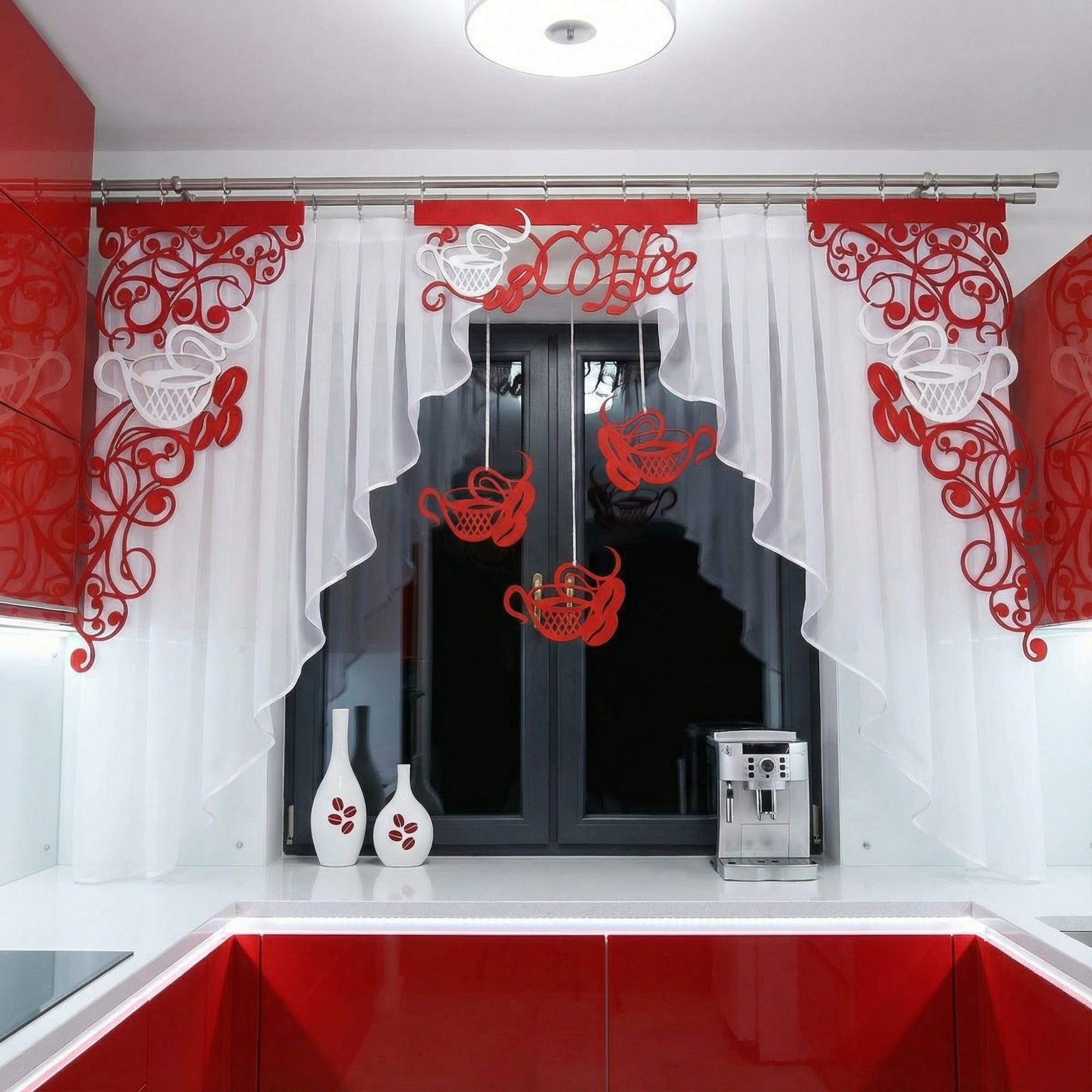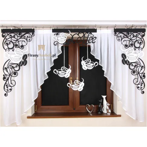 Firana z ażurem i zawieszkami Coffee2 to propozycja dla tych, którzy pragną wprowadzić do swojego wnętrza ożywczy klimat związany z piciem kawy. Stylowa ozdoba okna nie tylko spełnia te oczekiwania, ale także zapewnia odpowiednią ilość światła i tworzy w kuchni przytulną atmosferę.