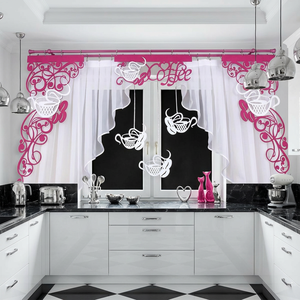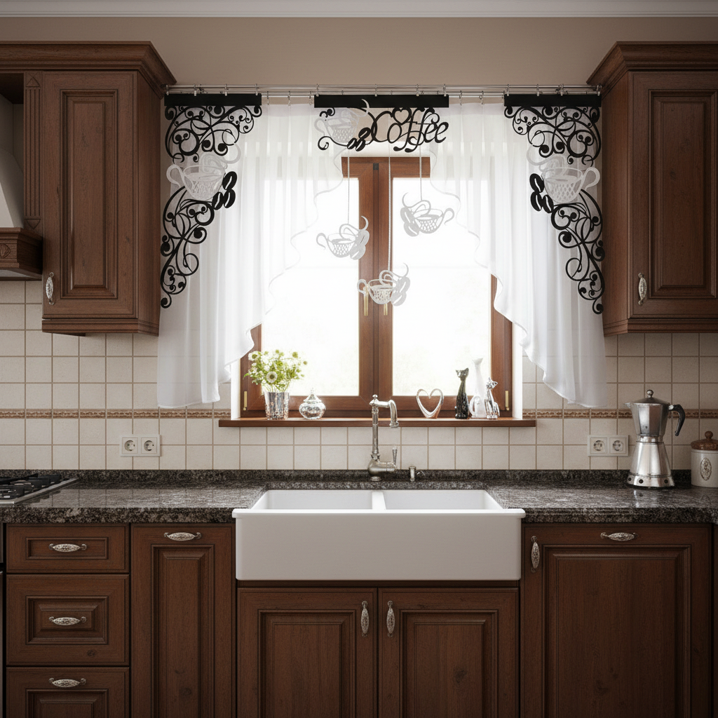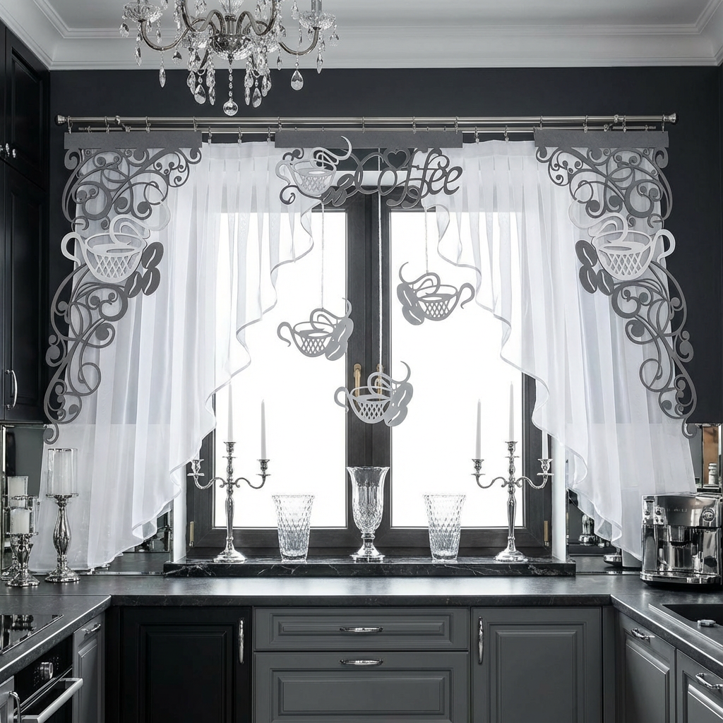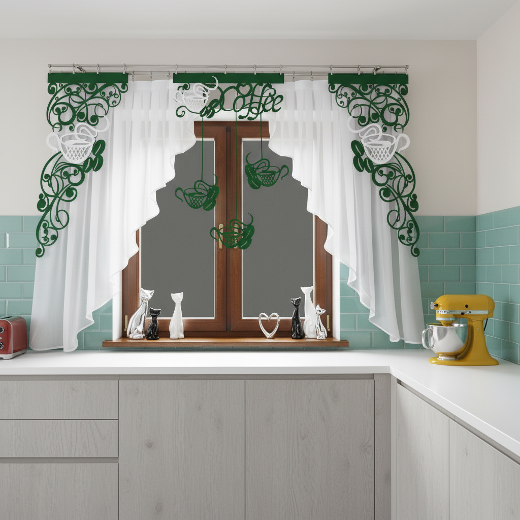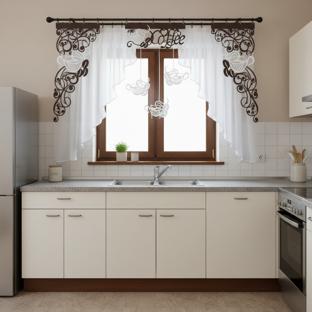 Inspirowana motywami kawowymi firana z ażurem i zawieszkami Coffee2 stanowi idealne połączenie nowoczesnego designu i klasycznej estetyki, które przypadnie do gustu każdemu miłośnikowi gustownie urządzonego domu i dobrze zaparzonego naparu. Dzięki obecności ażurowego panelu i rzucających się w oczy zawieszek, dekoracja okna jest zarówno subtelna, jak i wyrazista, podkreślając indywidualny charakter Twojej kuchni.