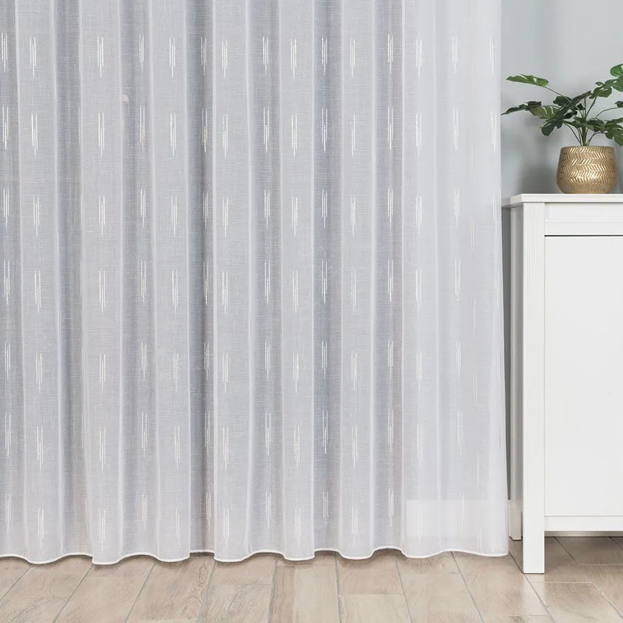Firanka fantazyjna ze wzorem po całości z ołowianką, wysokość 305, kolor 004 biały ze złotym 024960