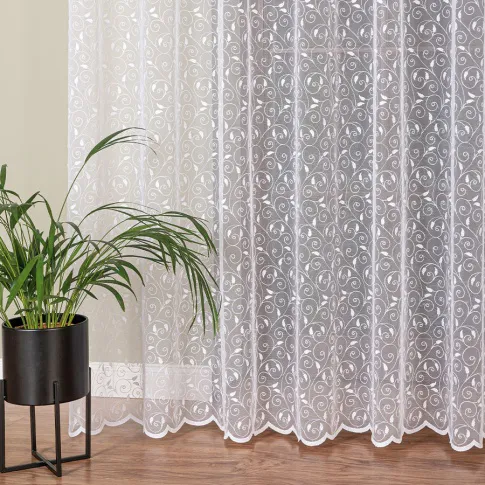 Firanka haftowana na greckim tiulu ze wzorem pasowym, wysokość 290cm, kolor 001 biały 013301