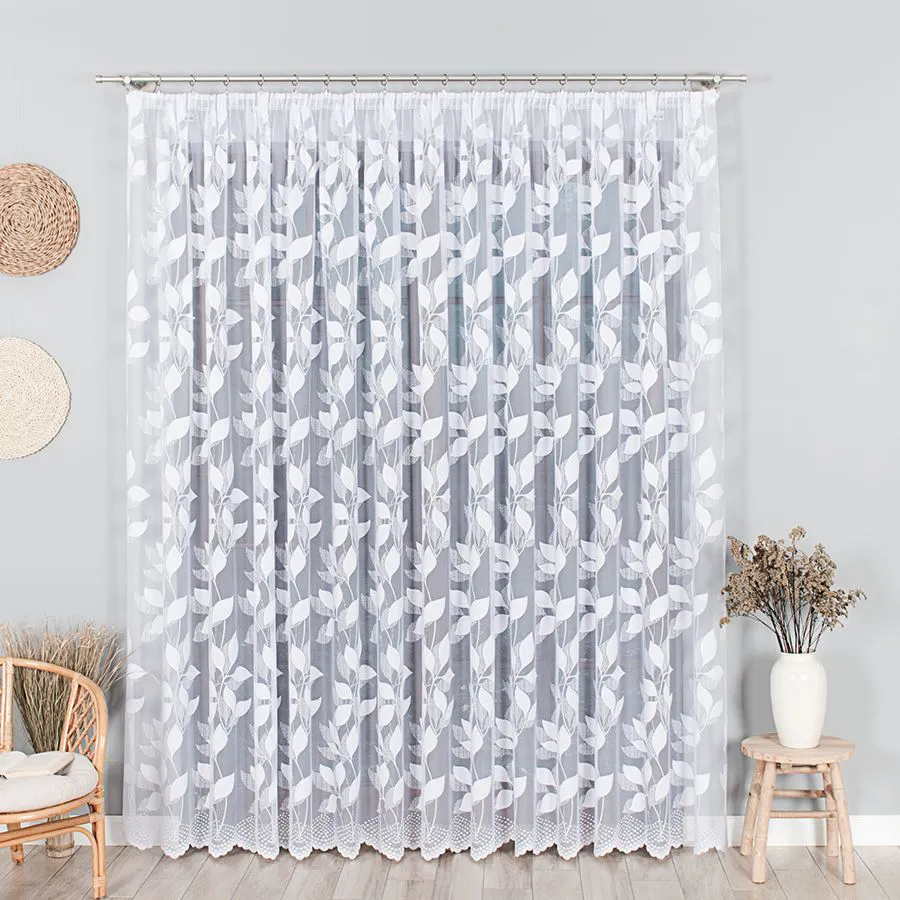 Przedstawiamy firankę żakardową model 023083, która wyróżnia się wzorem roślinnym z dużymi liśćmi pnącymi się ku górze. O wysokości 210 cm i w kolorze białym, ta firanka przynosi do wnętrz świeżość i naturalność, tworząc przytulną atmosferę.