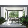 Zasłona ogrodowa Gardenia została wykończona akrylem, dzięki czemu będzie bardziej odporna na czynniki zewnętrzne. Wodoodporne wykończenie chroni przed deszczem oraz wilgocią. Przeznaczona jest do użytkowania na tarasie, pergoli, balkonie czy altanie. Zasłona posiada 8 metalowych przelotek wykonanych ze stali nierdzewnej. Kolekcja zasłon Gardenia składa się z siedmiu kolorów dostępnych w różnych rozmiarach.