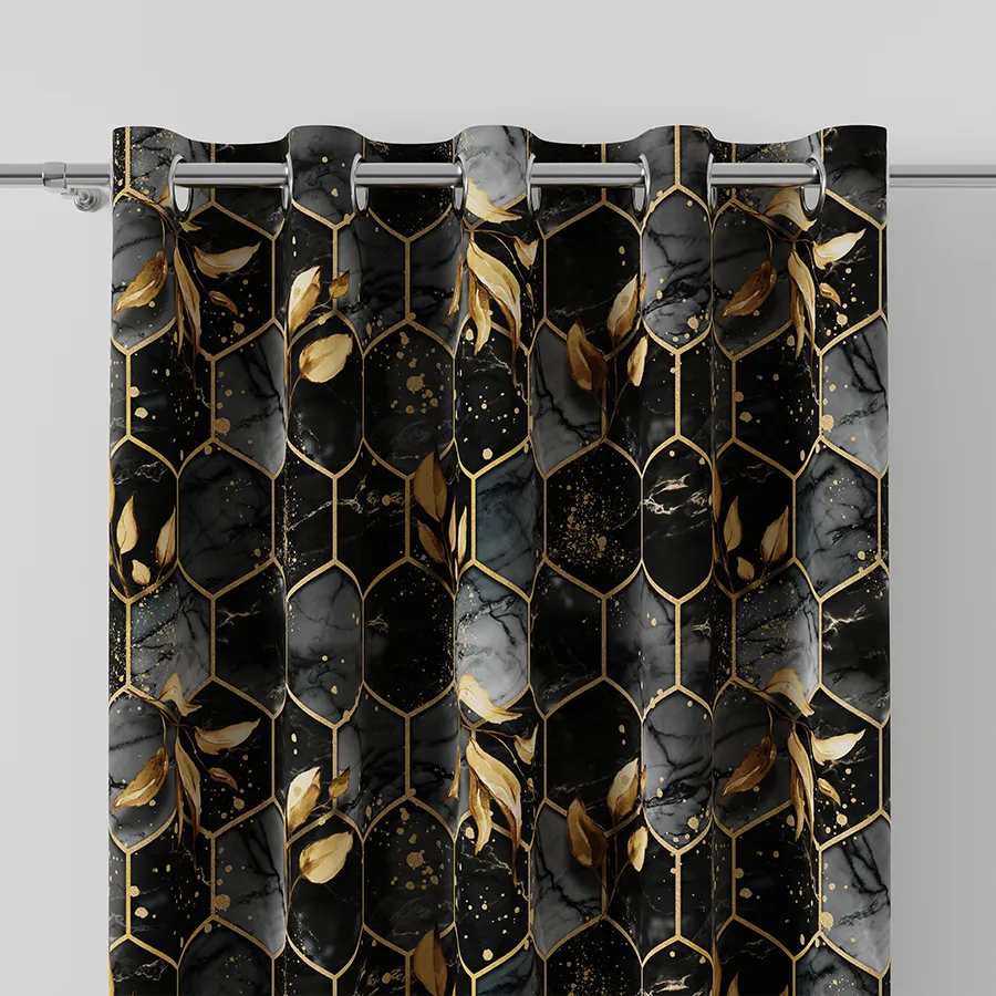 Tkanina dekoracyjna w geometryczny wzór na podkładzie BLACKOUT.