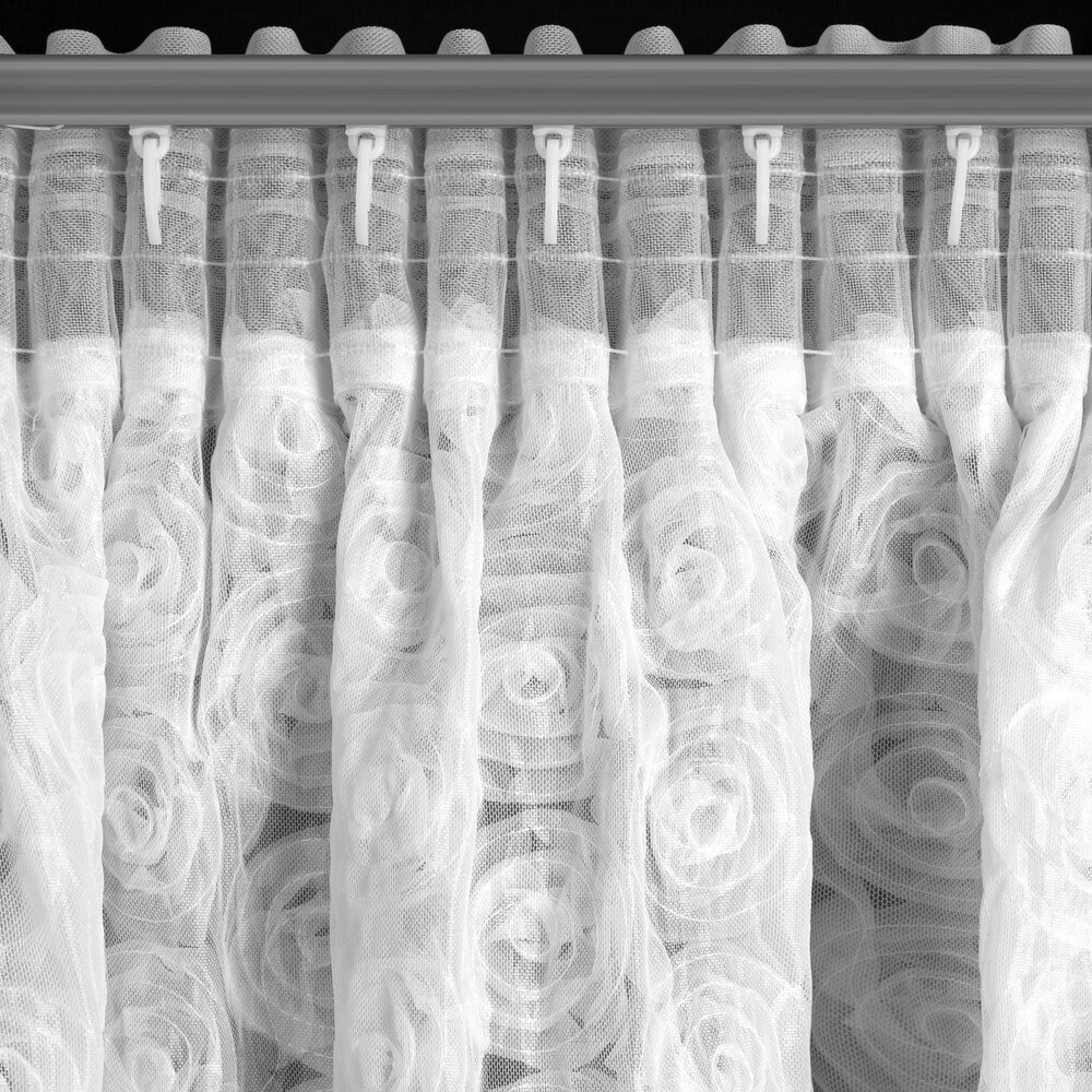 Zasłona gotowa z siatki z różami po całości szerokość: 140 cm, długość: 270 cm, kolor: biały, Gramatura: 50 GSM, Skład: 100% poliester