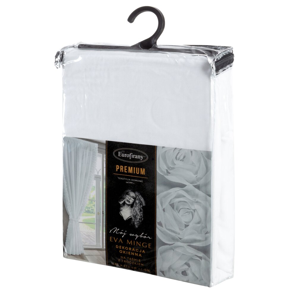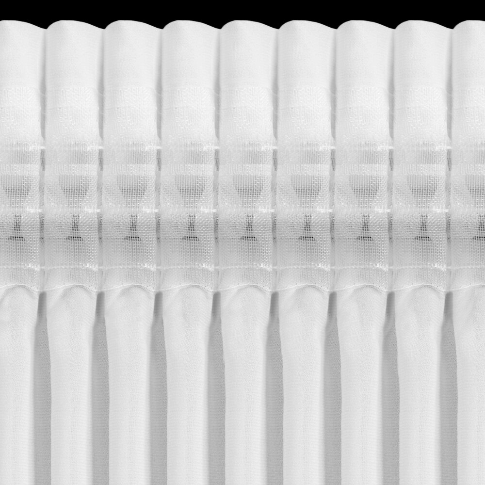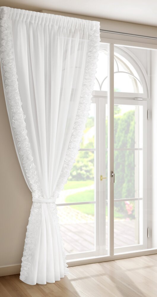 Firana gotowa z szyfonu z 1 pasem róż po obu stronach i troczkiem szerokość: 140 cm, długość: 270 cm, kolor: biały, Gramatura: 60 GSM, Skład: 100% poliester