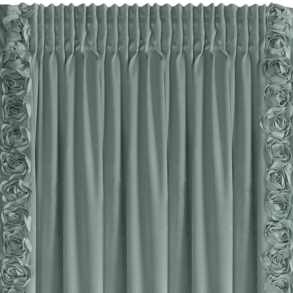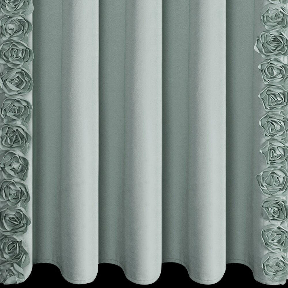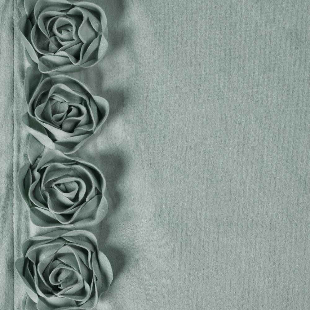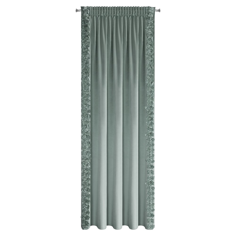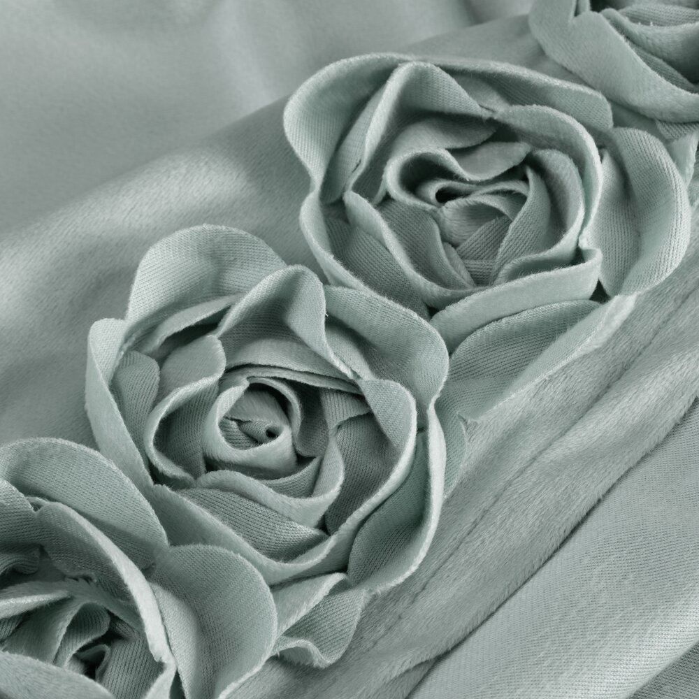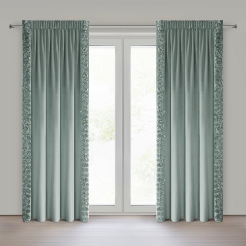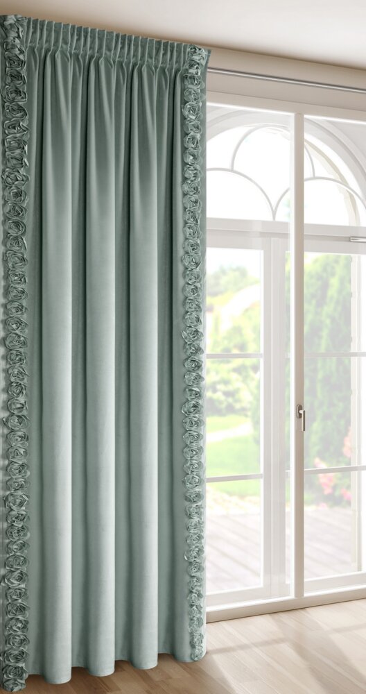 Zasłona gotowa welwetowa z pasami ozdobnych róż po bokach szerokość: 140 cm, długość: 270 cm, kolor: miętowy, Gramatura: 200 GSM, Skład: 100% poliester