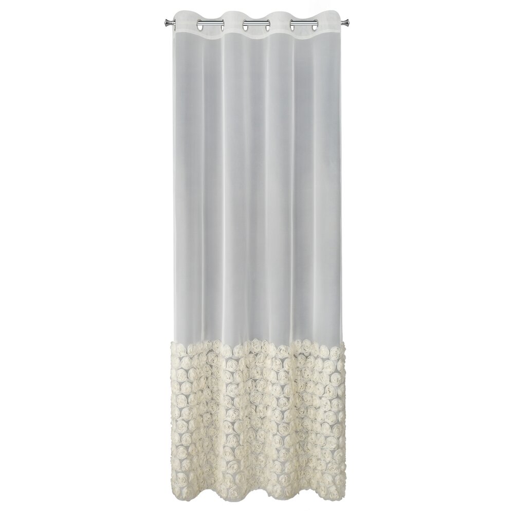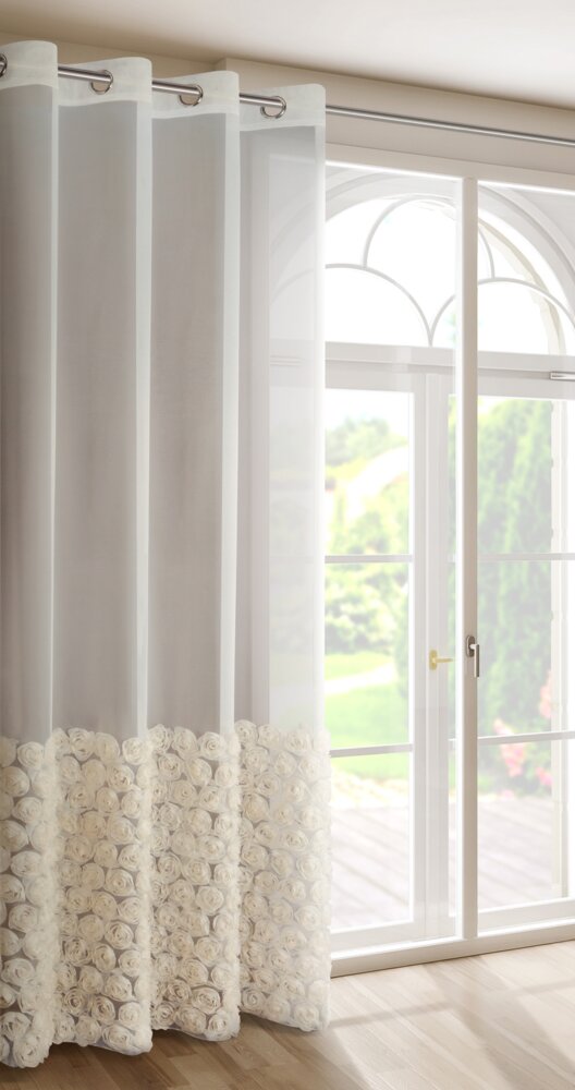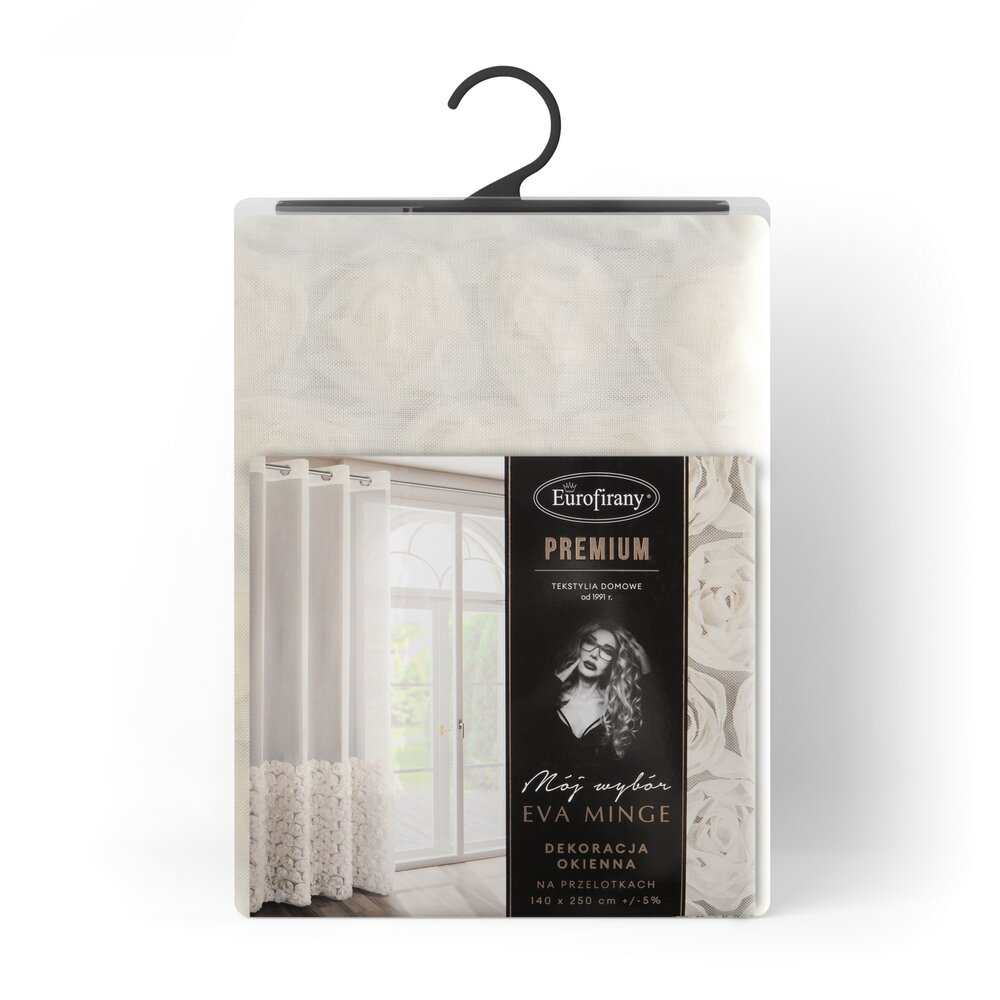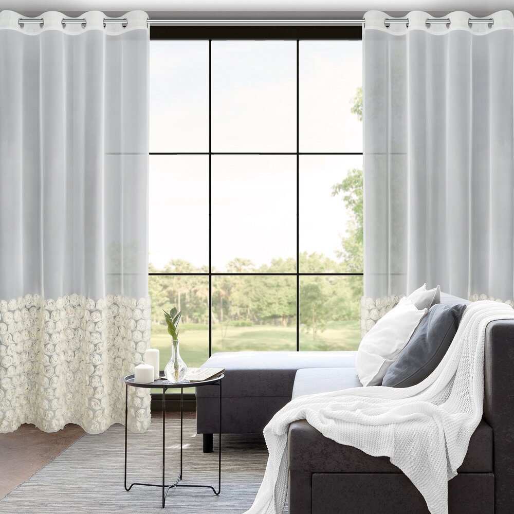 Firana gotowa z aplikacją w kształcie róż szerokość: 140 cm, długość: 250 cm, kolor: kremowy, Skład: 100% poliester