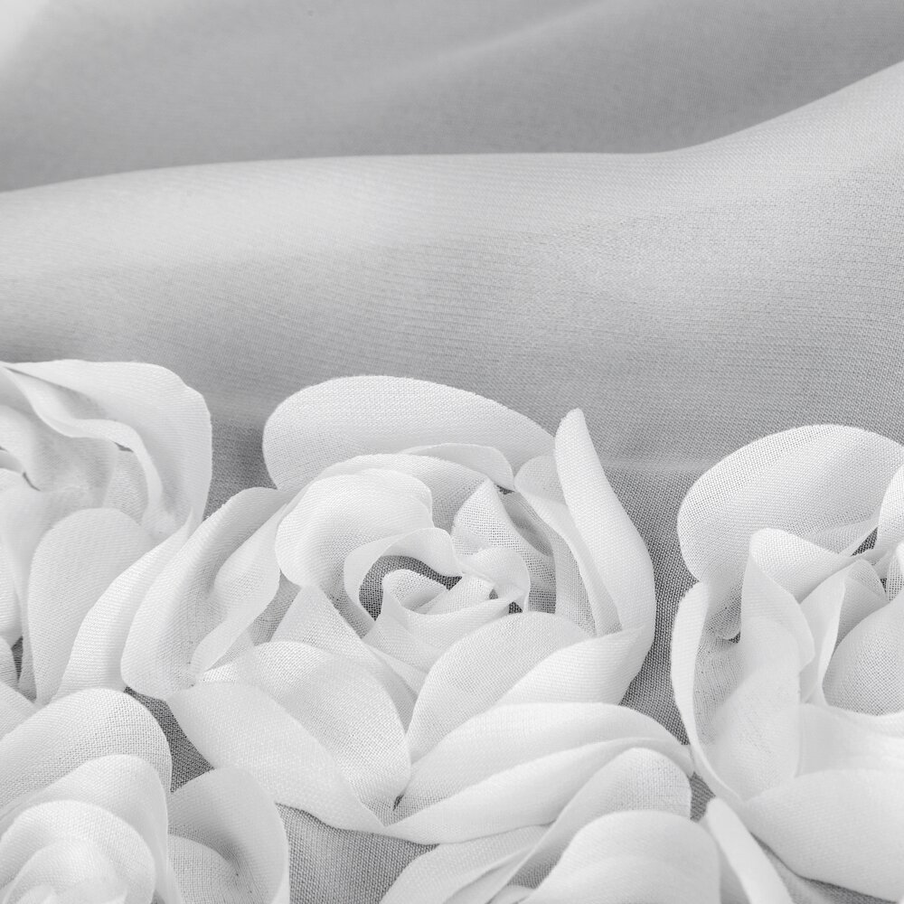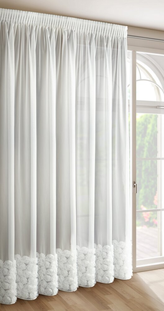 Firana gotowa z szyfonu z 6 pasami róż szerokość: 350 cm, długość: 270 cm, kolor: biały, Gramatura: 60 GSM, Skład: 100% poliester